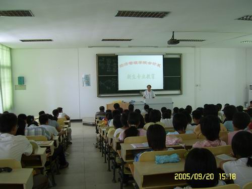 9月20日下午2:30,经济管理学院工商管理、会计学、国际经济与贸易、金融学四个系新生专业入学教育大会分别在3-309、3-210、3-310、3-110教室召开。