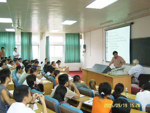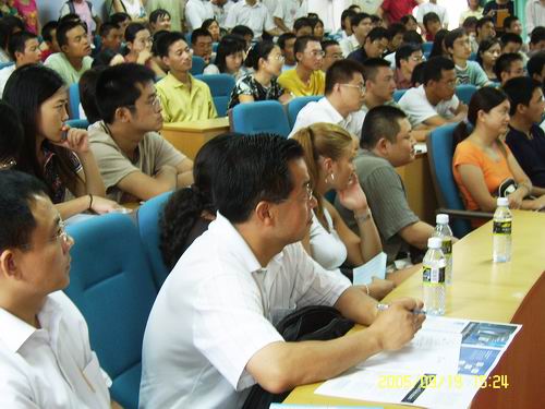 摩根•沃纳和朱迎教授主要从5个方面讲述了当今全球CEO所应具备的基本素质和能力,以及当前全球CEO的发展前景和所面临的挑战,并引用了许多生动鲜活的例子(比如通用公司、微软公司等)深入浅出地阐述了MBA管理的重要性、必要性和当今世界MBA人才的需求情况。他们风趣幽默的讲述引起了大家阵阵的掌声,特别是摩根•沃纳说的LIFE-LONG LEARNING更是引起了大家强烈的共鸣。学员们也结合自己当前的工作和学习中遇到的实际问题和教授们进行了热烈的讨论。