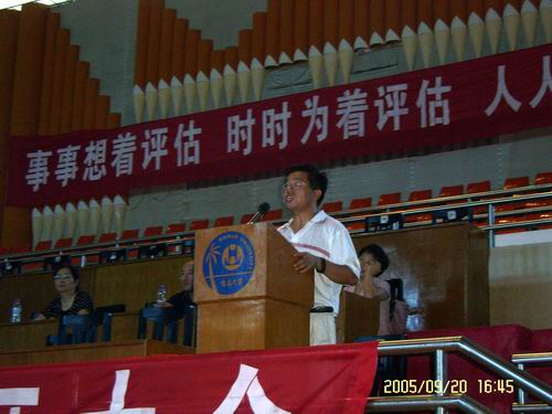 符史岱书记作总结发言,希望全体学生能够时刻想着评估,从身边的小事做起,从自身做起,做一名德智体综合素质过硬的特区大学生。树立校兴我荣、校衰我耻的意识,做到事事想着评估,时时为着评估,人人参与评估。