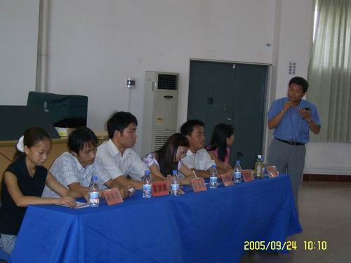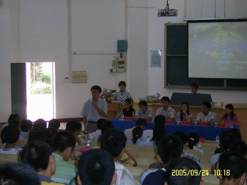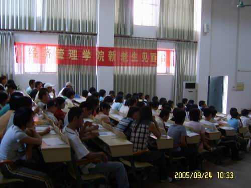 9月24日,经济管理学院在二号教学楼多功能厅召开了2005年新老生见面会。学院党总支符书记、学工办全体老师,我院2005级各班助理班主任、学生会、团委全体干部以及2005级全体新生参加了此次会议,会议还特别邀请了在学习和工作方面成绩卓著的我院高年级学生和我院2005级研究生与新生进行了交流。