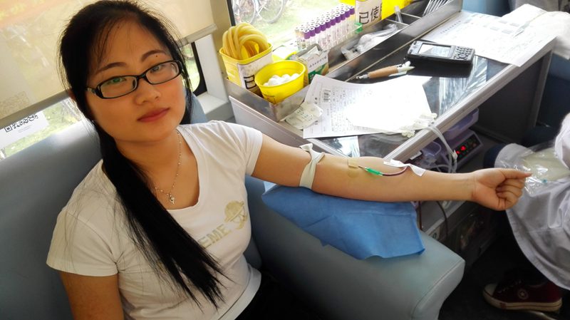 下午3点,参与无偿献血工作的医护人员和志愿者们在旅游学院食堂旁做好了相关准备。献血活动开始后,在医务人员的引导下,同学们们积极配合,严格遵守献血秩序,认真完成填表、体检、验血、抽血等程序。献血车里面暖意融融,气氛轻松欢畅,一张张熟悉的明媚的笑脸上充满着自信,他们当中既有第一次献血的同学,也有连续数次献血的同学,虽然他们的专业、年龄各有不同,在献血的话题上却都滔滔不绝。献血有量,爱心无限,个别同学参与无偿献血热情高涨,却因为不符合献血条件失望而归。现场的志愿者对献血的同学们随机进行采访,其中第一次参与无偿献血的13级唐琪同学显得非常激动,她说:“这是我第一次献血,虽然很紧张,但是感觉非常有意义。对我而言这可能只是两百毫升血,但是对别人而言可能就是挽救了一个生命。”另一位已经参与了7次无偿献血活动且连续三年被评为“献血先进个人”的11级李子文同学热情洋溢的跟志愿者们分享了献血的感受,他说:“其实献血并不像网上传言的那样可怕,定期献血不仅可以帮助到别人,更对自己的身体健康有好处,希望大家能够积极参与到无偿献血活动中,帮助更多需要的人。”