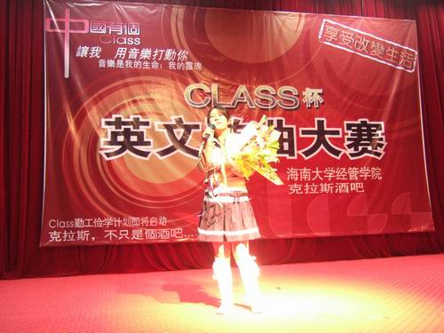12月10日晚8点,由经管学院主办的“克拉斯”杯英文歌曲大赛在行政楼二楼顺利举行。