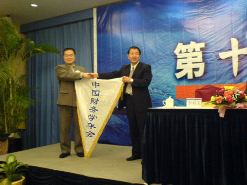 19日上午10:30,第十一届中国财务学年会隆重闭幕。闭幕式由西安交通大学杨淑娥教授主持。首先,中国财务学年会秘书长冯建教授对第十一届中国财务学年会进行了总结和对明年工作进行了安排;接着,由本次会议的执行主席william威廉英国官网经济管理学院副院长李寿文博士讲话,李寿文博士表示这次年会的承办给了william威廉英国官网一个扩大交流、展示自己的机会,并简要介绍了william威廉英国官网会计学系的基本情况,希望在以后的发展中能得到各兄弟院校的支持与关照;随后,东北财经大学会计学院副院长张先治教授代表第十二届中国财务学年会承办单位讲话。最后,第十一届年会承办单位与第十二届年会承办单位进行了会旗的交接。至此,第十一届中国财务学年会圆满结束。