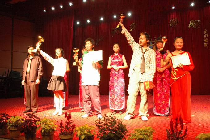 这次晚会共有舞蹈、小品、唱歌、舞台剧等18个节目,都是由各班级选送的优秀节目,每一个节目都充满着青春的活力。由于多数学生没有艺术基础,排练难度很大,但大家不怕艰难,利用业余时间一遍一遍地练,一次一次地纠正动作,同学们互教互帮,充分体现了团结奋进的精神风貌,我院历届文艺队骨干也多次回校指导。05动物科学班的节目在预选时被淘汰,但他们不服输,在短短的一个多星期的时间里,硬是重新排出新的节目,并顺利通过审核,该班的校外辅导员几乎每天下午和周末都赶来学校,亲自编排动作,手把手指导学生;03农学班38位同学全部参加演出,该班是我院参加人数最多的班级,体现了班级凝聚力。在演出过程中,全体演职人员都全身心投入,台下观众热情高涨,班级拉拉队各显神通。校外辅导员邓雄、符艳蕾合唱《明天会更好》把晚会推向高潮。最后,03农学的获一等奖,05级的现代舞获二等奖,04园艺的独唱和05农学的获三等奖.