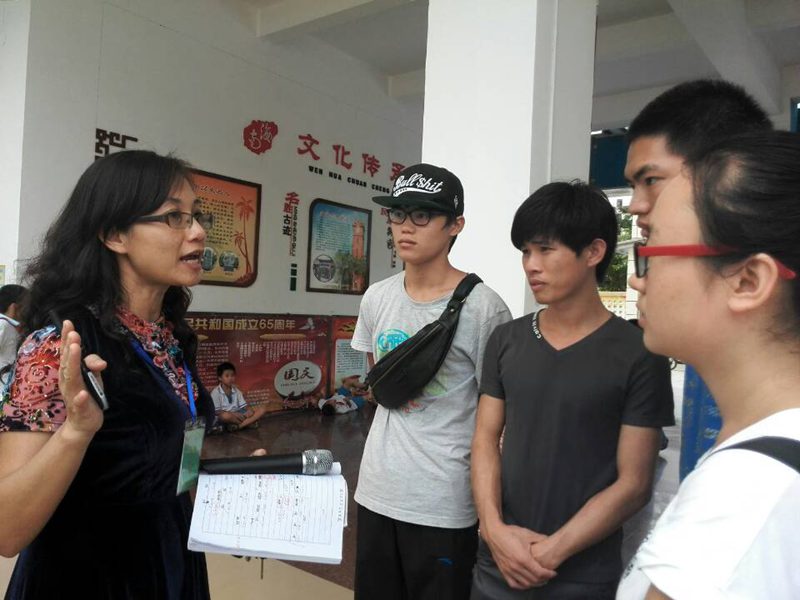 海口市第三十一小学钟校长与志愿者们亲切交流