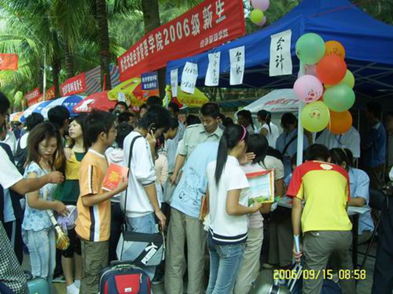 金秋送爽,9月15日的校园沐浴在一片和煦的椰风中,经济管理学院开始了紧张的迎新工作。今年我院新生人数众多,迎新工作繁重,为了将任务保质保量完成,在院团委和学工办的指导下,学生会和各班志愿者密切配合,14日将第一田径场外大本营布置完备,同时提前通知新生办理有关事宜,15日早晨8点便准时开始进行新生的报到注册登记工作。