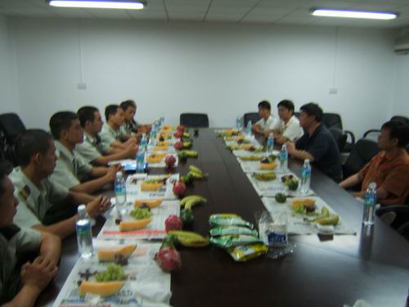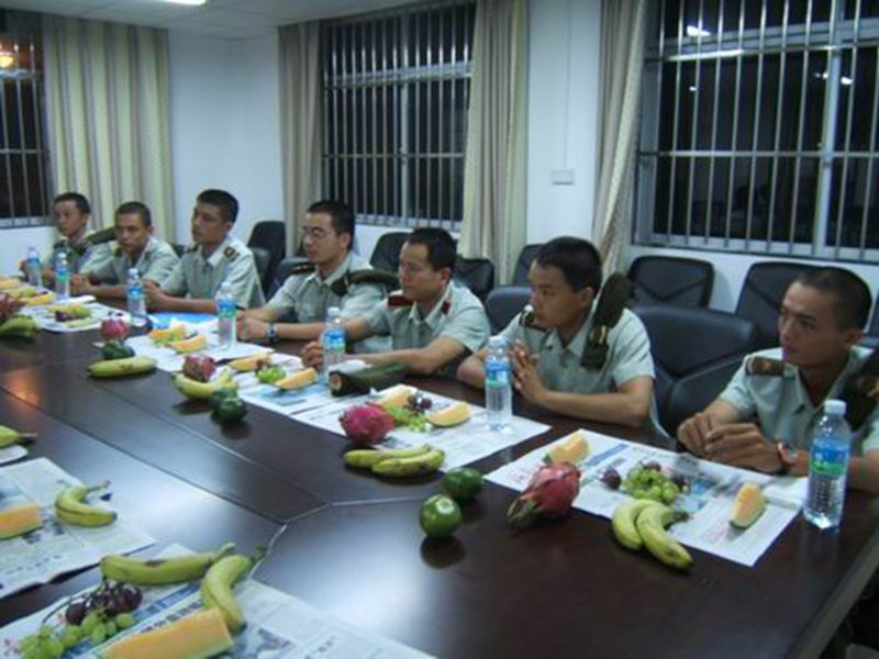 2006年9月20日晚,生命科学与农学院在学院会议室召开军训座谈会,慰问参训教官,了解06级新生军训情况。参加座谈会的有吴蔚东副院长、杨好伟副院长,参训人员王强副书记、黄丽芹副书记、何欢宝老师、李丹老师以及七名部队教官。何欢宝老师主持。