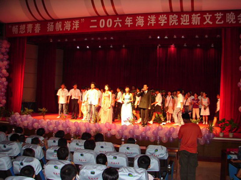 本次晚会还以青春激情、长征爱国、修身养性三个主体作为互动环节的抽奖知识问答。由海南缘定一生婚纱摄影名店提供的价值3000元的奖品到底花落谁家,同学们激动地攥着手中的入场券,等待着幸运之星的降临...... 这里是欢乐的海洋,这里是青春的舞台,这里是梦想的国度,我们畅想青春,我们扬帆海洋,海洋明天会更好!