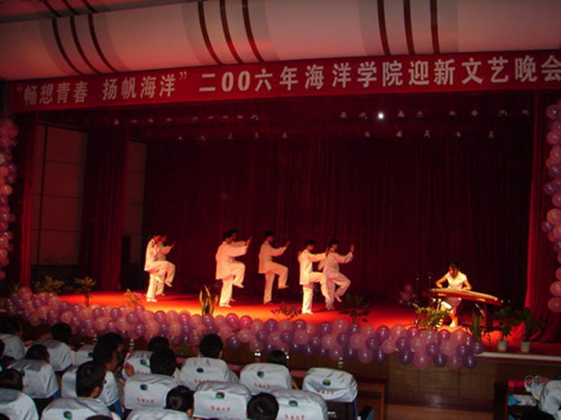 风姿卓越的新疆舞《坦塔娜》、神秘深邃的印度舞《阿育王》及高旷悠远的蒙古舞《蓝色的蒙古高原》,完美的体现了海院学子的精神风貌;精彩的武术《男儿当自强》展现了海洋学子的强健体魄;太极拳与古筝的完美融合展示了海洋学子的艺术灵性。动感十足的街舞、风趣幽默的相声等丰富多彩的节目感染着全场观众。