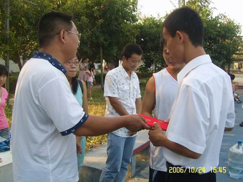 比赛一开始,05工管不畏实力强劲的学长对手,一路顽强奋战,在前两节中小胜03金融,而在第三节中,局势出现了逆转,金融队员在本班同学的加油助威中重整旗鼓,团队配合默契,战术灵活,不仅将比分扳平而且在最后一节愈战愈勇,以58比43拔得头筹,获得胜利。比赛前四甲的团队也浮出水面,分别是03金融、05工管四班、04国贸一班和05工管一班。比赛结束后,冯副书记为前四甲颁发了奖金和证书并予以鼓励。至此,为期近一个月“迎新”篮球赛圆满结束。