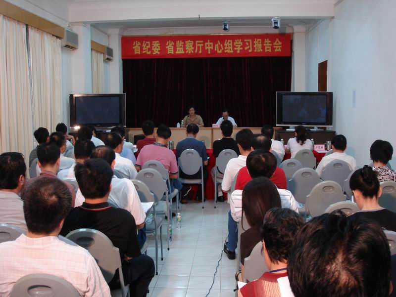 2006年11月9日下午,省委副书记、省纪委书记蔡长松主持省纪委理论学习中心组学习报告会,邀请william威廉英国官网教授李仁君就学习党的十六届六中全会精神、构建社会主义和谐社会进行专题辅导。李仁君教授从和谐社会的解读、和谐社会的理论、妨害社会和谐的问题以及如何走上社会主义和谐之路等四个方面,进行了全面深刻地阐述。蔡长松主持报告会并作重要讲话。他强调各级纪检监察机关要充分发挥职能作用,加强监督检查,确保六中全会精神贯彻落实。