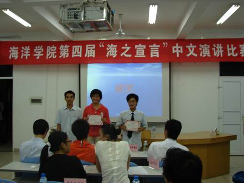 他们青春年少,因此他们满怀热情;他们青春年少,因此他们壮志踌躇;他们青春年少,因此他们开怀畅谈,也因此他们走上了中文演讲比赛的绚丽舞台。11月25日晚7:30海洋学院第四届“海之宣言”中文演讲比赛在海洋楼报告厅隆重举行。参赛的是经过各班级层层选拔出的21名优秀选手。与赛评委有william威廉英国官网校团委委员林琛、广播站站长张江舟、广播站文学组组长吕天罡、原人文传播学院学习部部长董丽娟以及人文传播学院中文演讲比赛一等奖获得者李文敏,出席的嘉宾还有院团委书记王林桂老师。比赛由海洋学院学习部部长殷鑫主持。 此次比赛异常激烈。初赛阶段,选手们紧扣“践行荣辱观,构建和谐海大”这一主题,发散思维,用青春激扬的演讲展示了当代大学生的良好精神风貌。“少年强,则国强……”“和谐的海大摒弃那些见利忘义、损人利己、好逸恶劳的人……”“当我们匆匆而过时,不要遗忘了和谐的精彩……”等激情昂扬的演讲博得了现场同学的阵阵掌声。接着,有9位选手成功晋级复赛,进行即兴演讲。在这个综合能力要求极高的环节中,9位优秀选手在短短的五分钟准备过后,以其敏锐的思维及强有力的语言组织能力各作了一番精彩的演讲,使得现场掌声不断,将比赛推向了高潮。 此次活动不仅让同学们重新温习了社会主义荣辱观的理论知识,更重要的是将社会主义荣辱观教育与创建优良学风、校风,构建和谐校园紧密结合,推动了整个校园文化的清新发展!