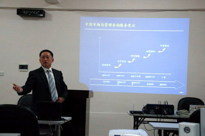 讲座安排经管学院一号教学楼三楼的第二会议室进行,岳先生风趣的讲座给大家留下了深刻的印象,此次讲座的内容主要是围绕管理咨询行业,对MBA来说,既令人向往,又带着许些神秘;管理,是MBA今后从业的主流,作为MBA职业生涯该如何规划;请关注来自于中国本土著名管理咨询公司合伙人的思考与分享三个方面展开。