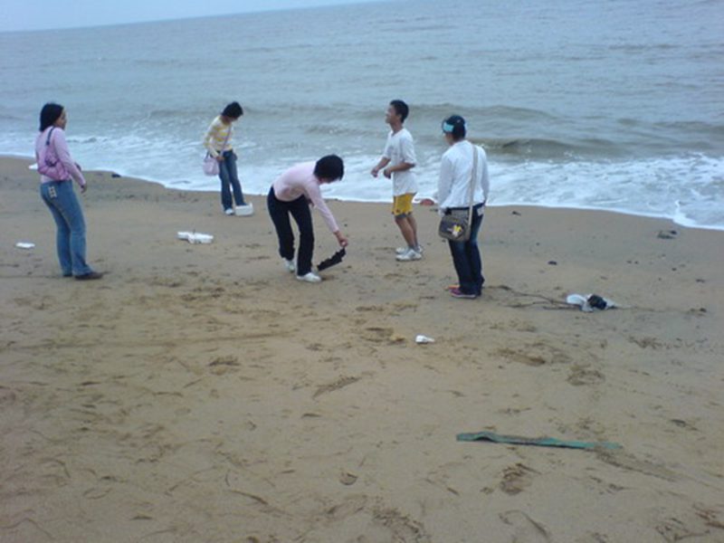 同学们一个个忙得热火朝天,干劲十足,三五成群,认真地清理垃圾,还大自然一个美丽、清洁的沙滩。沙滩的游客见状纷纷询问,同学们热情地向游客宣传环保的重要性,提高群众觉悟,后来大多数的游客都自觉把垃圾扔进垃圾箱。