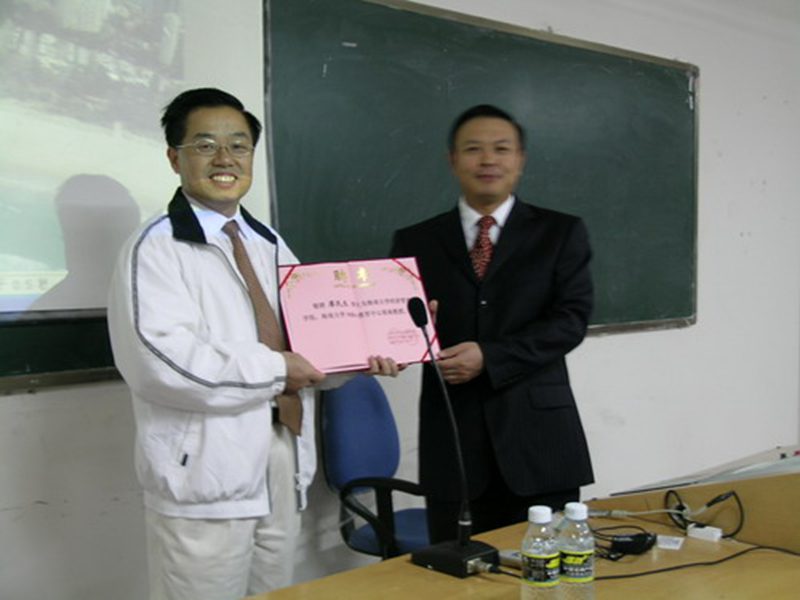 院长黄景贵教授给廖民生副秘书长颁发客座教授聘书