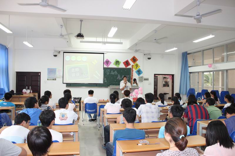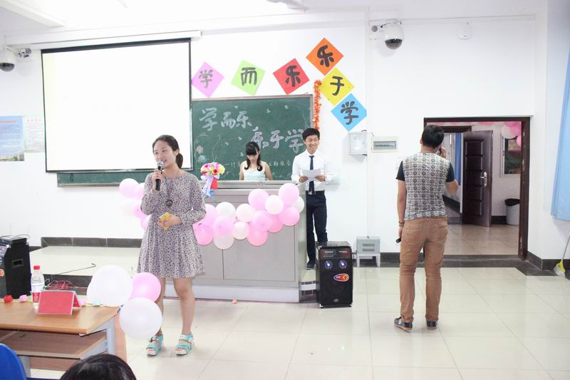 2014年4月29日下午, 2013级计算机科学与技术(2)班在4教214室举行了以“学而乐,乐于学”为主题的心理班会。本次活动旨在增长同学们的心理健康知识,增强集体荣誉感,营造良好的学习氛围和充满正能量的气氛,把快乐学习的观念传达到每一个人。班会由班长吴晗和心理委员黄嘉敏主持。班主任周辉老师、辅导员欧少红老师、学院心理工作指导老师齐有伟老师出席了班会。 班会开始,班主任发表了热情洋溢的讲话,周老师以他大学学习的经历拉近了与同学们的距离,获得了热烈的掌声。本次主题班会通过PPT解说、视频展示、心理情景剧、心理测试、趣味游戏等形式展开。首先是心理健康知识普及。主持人简单介绍了“5.25”心理健康月的由来,大家一起观看了两个有关心理知识方面的小视频,普及心理健康知识。为了让同学们进一步了解心理的奥妙,主持人随机抽取6位同学参与了对记忆力的测试和对个人性格剖析的心理测试。接着,由张阳玉、梁志炫、任磊、段梦园四位同学主演了心理情景剧,分别从爱情、学习、亲情、梦想四个主题反映了当代大学生的大学生活。大家对此感触颇深,情景剧勾起了同学们最初的梦想,激起了大家对学习的热情和对梦想的追求。第三环节是如何增强学习兴趣。一个小短片详细介绍了培养学习兴趣的方法和步骤。观看视频后,三名同学分享了自己的学习心得,一起探讨了如何学习、如何快乐地学习、如何增强学习兴趣,大家认为,想要在学习上取得成功,先得在学习上找到快乐,从易到难,逐步建立自信心。第四环节是大家期待的游戏环节:我行我素。同学们热情高涨,积极参与,现场欢声笑语。在辅导员的指引下,36个男生最终以三十六种不同的方式从教室的一端走到教室的另一端。大家从游戏中明白一个道理“从一点到另一点,每个人都可以有不同的方法;在成功的道路上也是,每个人的成功之路都可以不一样,成功有无数种方法,所以只要自己努力去尝试,都可以走出属于自己的路。” 最后,学院心理工作指导老师齐有伟老师总结了本次班会,他肯定了本次班会的形式,并结合当前大学生的心理问题提出了指导性的意见。班会在大家的热烈掌声中圆满结束。
