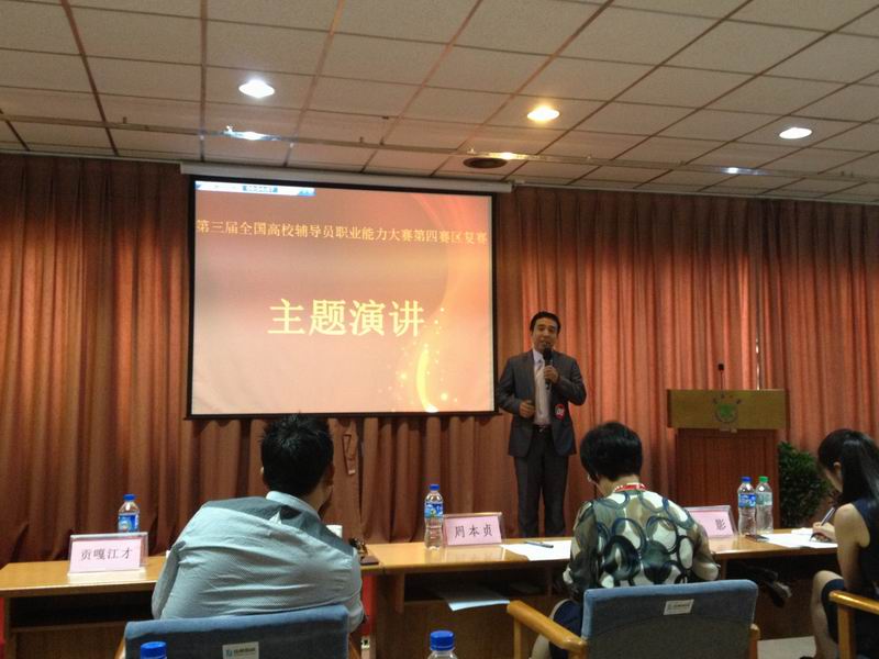 本次比赛项目包括基础知识测试、博文写作、主题班会、自我介绍与特色工作展示、主题演讲、案例分析、谈心谈话情景再现等7部分。我院团委书记齐昌盛老师以海南省初赛第七名的成绩参加此次复赛。赛前,信息学院领导高度重视,组建了辅导员职业能力大赛辅导团队,指派专人进行赛前的讨论与指导,并在参赛经费上给予大力支持,经过激烈角逐,齐昌盛老师展现了信息辅导员昂扬的精神风貌和精湛的职业能力,获得二等奖的好成绩(在全省10位选送选手中排名第二)。