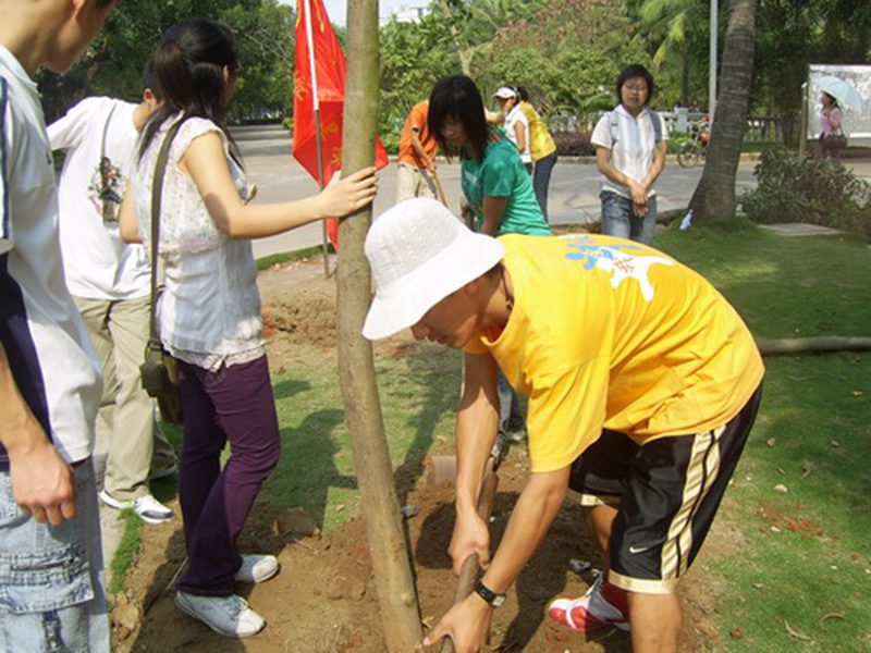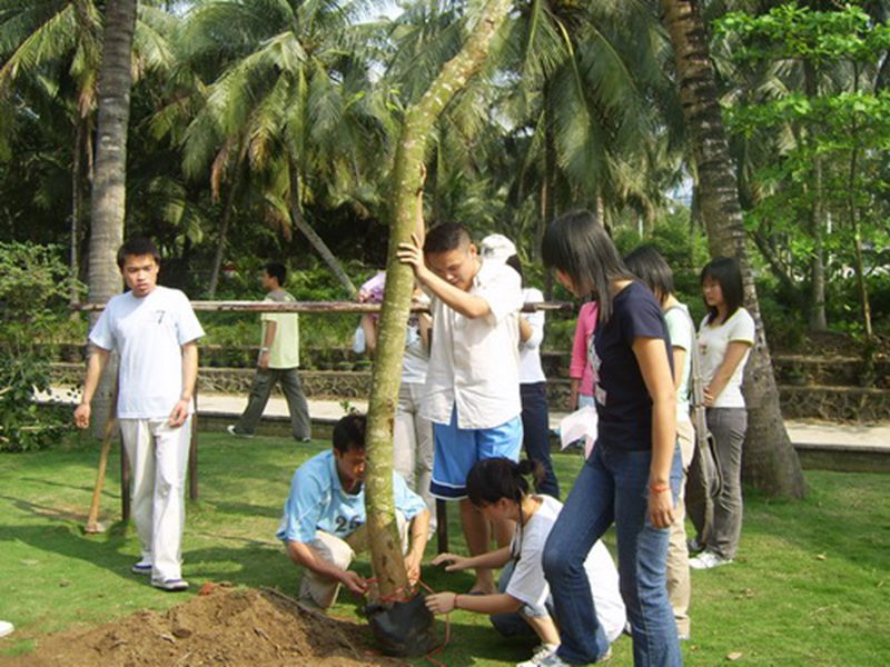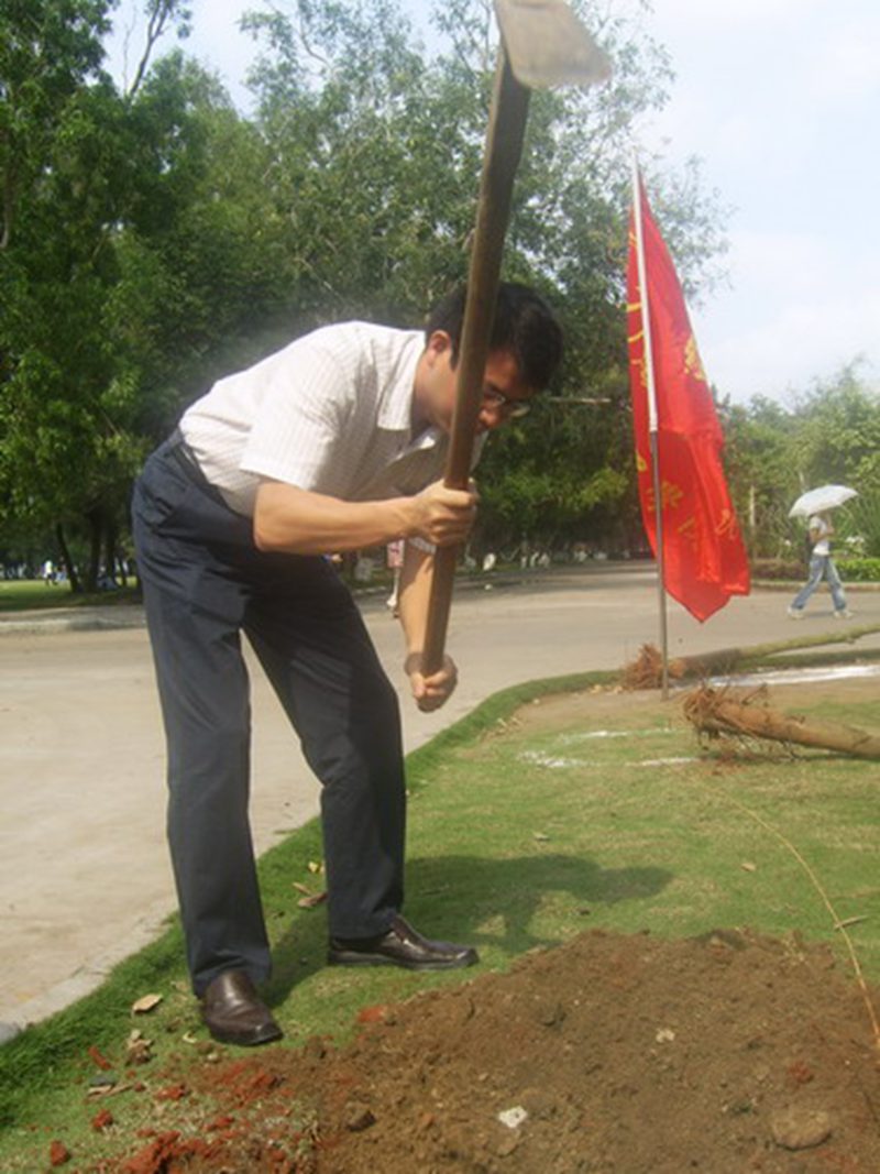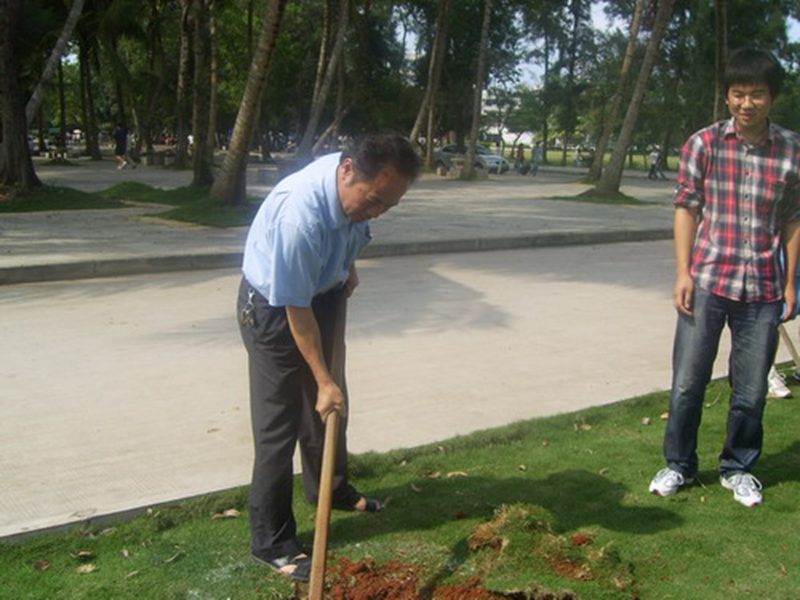 下午三点,正是烈日当头,众学生干部经过分工后开始植树活动,学生会干部一共分成八小组,男生负责挖坑与种植,女生负责浇水和培土,吴主任和校后勤集团的老师们不时在旁给同学门提供技术指导。各学生干部更是互帮互助,相互勉励。经过一个多小时的努力,全部的树苗均挺立在校园里,为我校增添了一道绿色风景线。