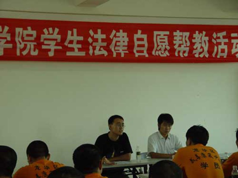 学生干部李金彪、孙大伟在做帮教法律讲座