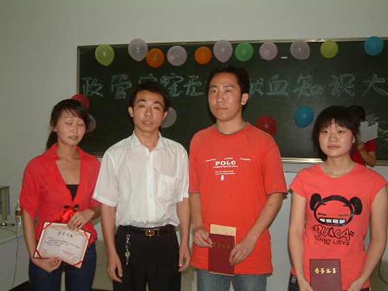 4月14日晚,伴着《爱的奉献》悠扬的乐曲,我院“献血杯”无偿献血知识大赛在3—104教室隆重举行。学院本科生第二党支部书记李辉、赵士刚同学、学生会主席陈婷婷、邓小平理论与“三个代表”重要思想研究学会副会长范煜和团委宣传部部长周方担任了评委。 参赛队分别是由05、06级各班组成的“红心之源”、“Love之源”、“血聚之源”、“O型血”、“红色飞扬”、“献血天使”六个代表队。比赛分为必答题、抢答题和风险题三个环节,经过各队沉着应答、激烈竞争,最终,05行政管理1班“O型血”代表队获第一名、06行政管理1班“献血天使”代表队获第二名、05行政管理2班“红色飞扬”代表队获第三名。
