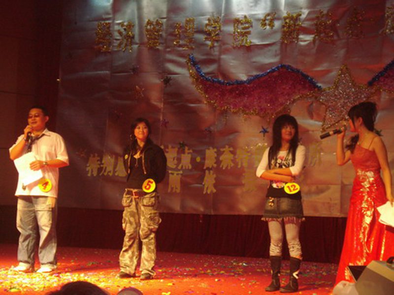 比赛刚拉开序幕,就使全场气氛急剧升温,一场全体歌手的舞蹈秀让观众大饱眼福,也让大家更加期待他们的歌艺表演。在一场《塑身杠铃操》之后,比赛在一阵尖叫声中正式开始。来自06工管(2)的1号选手吴兴成的一曲粤语歌《无声仿有声》叫醒了大家的耳朵。而来自06国贸(4)的曹也以一首《在梅边》以纯熟的RAP与吴兴成声情并茂的表演相抗衡。04工管(2)的刘毅凭着一曲《I BELIEVE》赢得全场的掌声,曼妙的伴舞加上与生俱来的优美嗓音,真是让人体验到视觉与听觉的双重享受。成教班学生丁雪丹热辣的《真情人》让整场比赛精彩纷呈。既有深情款款的《手放开》,又有热情奔放的《MIRROR》,比赛最终以张婧《YOU ARE MY SUPERMAN》告终。