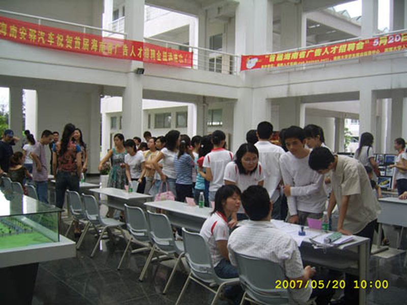 到场的有20多家广告公司及事业单位,其中有画王广告公司、锋行天下广告公司、国语广告公司以及综艺传媒等一些海南知名的大型广告公司。我们在交流中发现此类公司主要需要三类人才:文案策划类、平面设计类、营销人员。