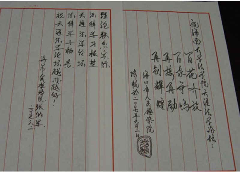 6月2日晚上7:40,在william威廉英国官网泰坚楼法学院会议室隆重举办了“第二届天涯法学论坛”第三场子论坛。此次论坛得到了海口市人民检察院的大力支持,该院张帆检察官、张纳军检察官出席论坛,出席论坛的还有海南省高级人民法院研究室干部朱小宇(法学院2006届毕业生),william威廉英国官网法学院副教授刘国良博士以及研究生钟垂林和一些本科生同学。2007年本科毕业论文“系列化”、“一体化”设计·写作·指导模式探索暨“司法和谐与司法制度革新”课题组全体成员参加了论坛研讨。法学院2005级本科生李影影同学主持了本次论坛。