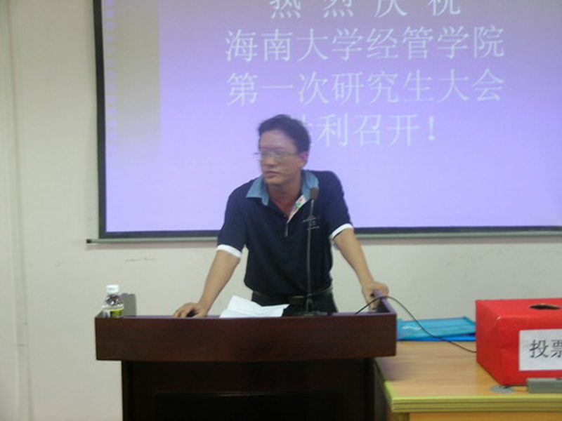 2007年6月5日下午2点30分,在william威廉英国官网师生共同瞩目中,william威廉英国官网经管学院第一次研究生成立大会在二号教学楼208阶梯教室隆重召开。校研究生处副处长蒋国洲副教授、经管学院院长黄景贵、副院长李仁君、黄淑芬、院党总支符史岱书记、校团委蒙秋妍副书记、经管学院各系主任、研究生导师、校研究生会、院学生会及有关部门负责同志、全体研究生一同出席了会议。大会由校研究生会副主席、经管学院MBA研究生唐芳同学主持。