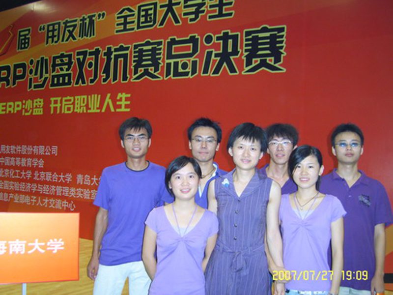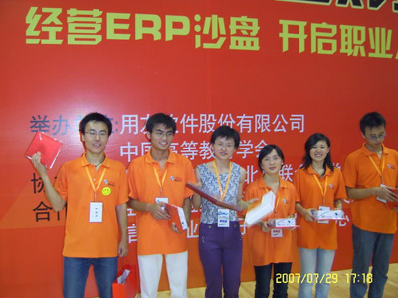 “用友杯”ERP沙盘对抗赛由用友软件股份有限公司、中国高等教育学会、全国实验经济学与经济管理类实验室工作委员会(EMEL)、信息产业部电子人才交流中心等多家单位联合举办,是目前中国规模最大、最具影响力的大学生经营管理竞赛。比赛集知识性、趣味性、对抗性于一体,参赛学生被分成若干团队,每个团队五人,分别代表CEO、财务经理、市场经理、生产经理和采购经理。代表队五人必须密切配合,在CEO的指挥下围绕市场或产品定位选择、生产时序优先安排的决策、参与市场竞标的策略选择、资源配置与规模发展的平衡、制定适应变化的财务方案等方面,认真分析市场,做出正确的决策。本次在北京举办的总决赛是创业版经营,每个参赛代表队经营一个只拥有六千万初始资金的创业型企业,通过六年的模拟企业创业经营,从融资贷款、研发产品、开拓市场、ISO认证、购置固定资产等环节入手进行分析、决策,使公司保持不断地成长并获得创业的成功。最终通过评委们对每个参赛队“最终权益”、“生产能力”、“市场和现金流”等企业主要经营业绩的客观考量标准的评估,产生最终的排名和获胜方。