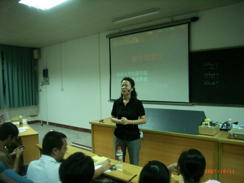 在大家的热烈掌声中,齐晓梅副教授通过照片展示给大家呈现出了一个风景如画的加拿大。接着,齐副教授又重点介绍了滑铁卢大学co—op本科办学模式及留学相关情况介绍。最后,在互动时间中,针对学生提出的疑问,齐教授做出了一一回答。