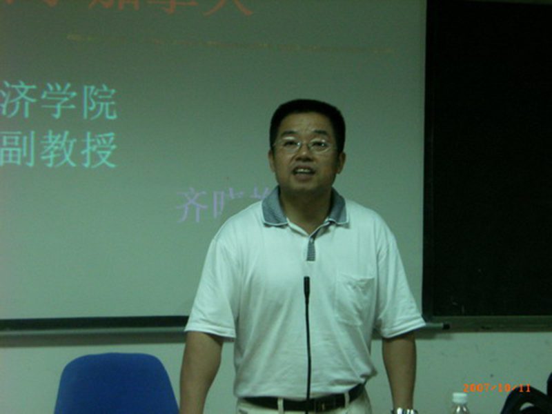 经济学院求知论坛系列讲座于2007年10月11日晚如期举行。由于参加讲座的学生很多,整个2—208教室座无虚席。经济学院院长黄景贵教授、副院长李仁君教授、工商管理系齐晓梅副教授出席了本次讲座。