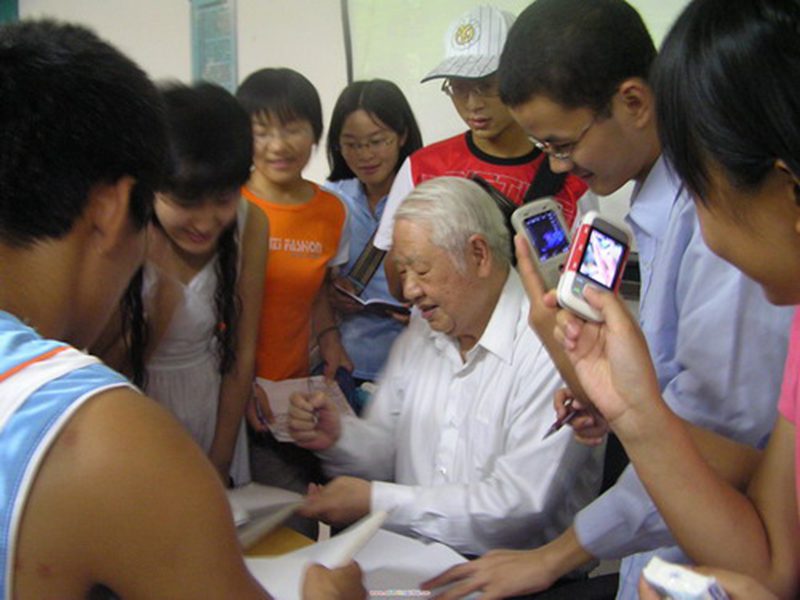 诗人洛夫为同学们签名留念