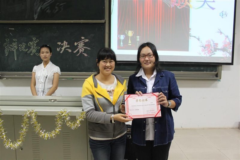 纵观整个比赛,辩手们精辟的措辞,犀利的言辞,清晰的思路和巧妙的陈词都给观众留下了深刻印象。经过激烈的角逐,最终“无双”队凭借敏捷的反应和严谨的逻辑夺得本届辩论赛冠军,“白马非马”队斩获亚军,“3.5”队惜居季军,庞小婧同学荣获最佳辩手称号。周霞老师、刘勇勤老师和陈阳老师分别为他们颁奖。