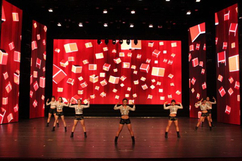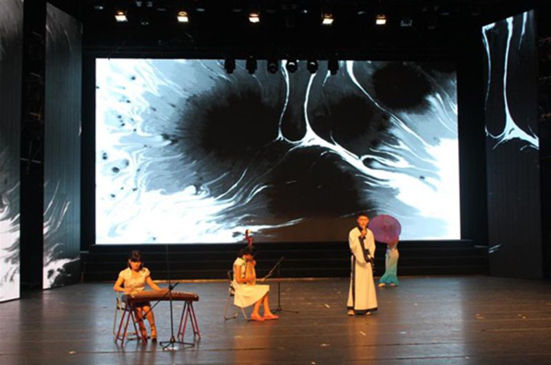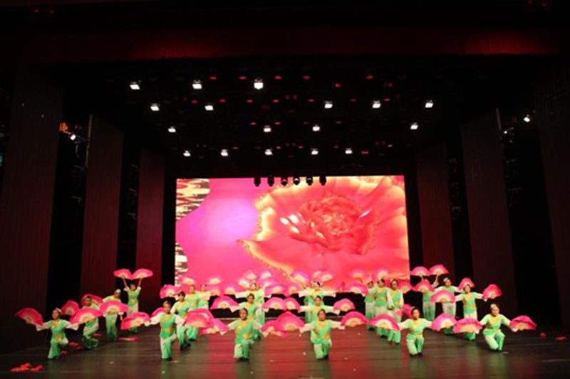 在中场互动后,晚会开启了第二篇章----“右手梦想”,首先由2012级生物科学专业的同学带来具有浓郁民族风情的扇子舞《欢天喜地》,演员们动感而曼妙的舞姿搭配欢快而喜庆的音乐,使整个会场热闹非凡、喜气洋洋。小品《我的大学》让同学们在欢笑之余多了一份对大学生活的思考。乐器合奏《克罗地亚狂想曲》则为观众们带来了一场精彩的视听盛宴。最后,晚会在歌舞《相亲相爱》中圆满落幕。众嘉宾上台与演员工作人员合影留念。