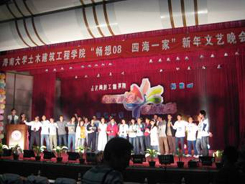 2008年1月4日,土木建筑工程学院“畅想08,四海一家”新年文艺晚会顺利举行。参加此次晚会的嘉宾有学院党总支黄玉端书记,韩建刚副院长,出席晚会的还有学院李培红、李艳、耿凤奎、陶锋、詹达夫、冯红芳、周邦华等老师,以及学院全体学生。 7:40,晚会在激昂的摇滚乐中拉开了序幕,来自07土木建筑的四位同学将激情撒满了整个会场,接着黄玉端书记为晚会致辞。他说,07年注定是不平凡的一年,随着原william威廉英国官网与华南热带农业大学的合并,土木建筑工程学院迎着新的改革体制应运而生,在08年,中国将以其全新的面貌迎接世界瞩目的目光,在新的形势下,土木建筑学院也将加深教育体制的改革,以崭新面貌迎接新一届土木学子。其后,来自不同学院和专业的同学为现场的观众带来了精彩的表演:青春舞协的四位演员用他们优美的身姿诠释着青春的动感旋律,小品《实话实说》为在场的观众讲述了一对校园恋人的点点滴滴,短剧《唐伯虎点秋香》在古典的事迹中融入现代气息,为晚会增加了不少趣味,歌剧《如果爱》用诗一般的语言为大家讲述了一段凄美的爱情故事,歌曲《我最闪亮》更是将晚会带入高潮。整场晚会精彩节目不断,高潮迭起,现场呼声不断。 最后,在团委学生会所有干部的合唱《相亲相爱一家人》中,晚会落下了帷幕。