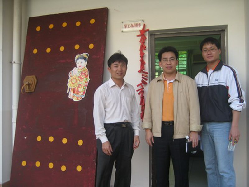 在国交院学工办前合影(中为陈卫东副处长 右为李江俊老师 左为学工办王华主任)