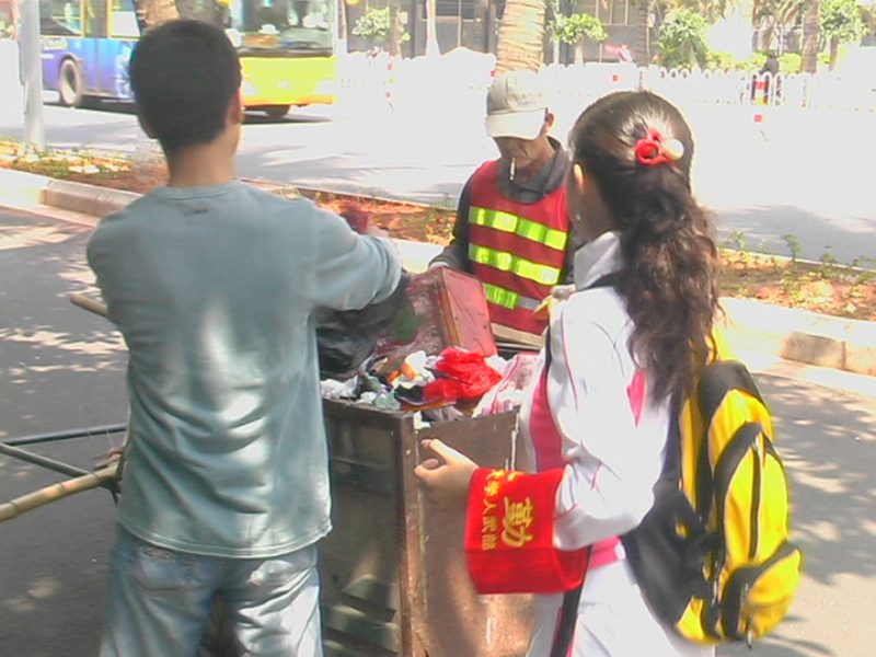 三月的海南是一个阳光明媚,生机勃勃的季节,而三月的海大更是一个讲文明、树新风,让雷锋精神吹遍校园每一个角落的季节。3月4日下午,应学校团委的号召,在学院学工办老师的领导组织下,我院07级学生开展了一次以“学雷锋,献爱心,环保志愿行”的社会公益活动。 活动分三个小组,分别前往白沙门、万绿园及三东路的十字路口进行垃圾清理、打扫卫生和协助维护交通秩序。活动伊始,学工办何佳老师,丁民宜老师及我院青年志愿者在起点草坪举行了出征仪式。在出征仪式上,何佳老师作了动员讲话,并带领志愿者进行志愿者宣誓。 本次活动目的是让学生增强环保意识,发扬雷锋乐于助人的精神。参加活动的各专业学生发扬不怕脏、不怕累的品格,用自己的实际行动践行了雷锋精神,为环境保护、爱心社会奉献自己的一份绵薄之力,展现了较高的个人素养及团队互助的精神风貌,同时也树立了我院学生爱护环境、关心社会的良好形象。