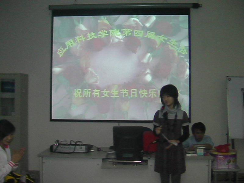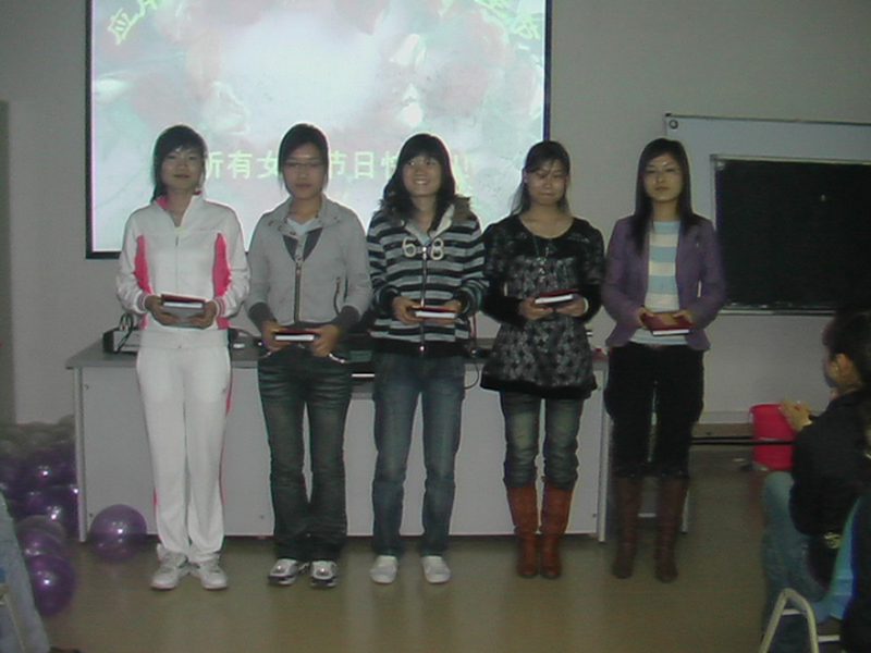 2008年3月10日晚7:00,应用科技学院在1-F101教室隆重举行2007-2008学年度女生标兵评选颁奖活动。本次活动也是应用科技学院第四届女生节的系列活动之一。学生工作办公室何佳老师,丁民宜老师亲临现场,并向全院的女同学们表示节日的问候和衷心的祝福。每位到场的女同学都获得了由院团委、学生会精心准备的节日礼物。晚会上同学们边吃着蛋糕,边参与节目做游戏。同学们的热情高涨,现场气氛非常活跃,都积极争取参与活动组织的小游戏!丁民宜老师宣读了获得女生标兵的同学名单,并为获奖同学颁发了证书及奖品:2007级市场营销班赵航同学,吴佳同学,2007级会计班周丹丹同学,2007级计算机科学与技术班樊列翠同学获得了本届女生节评选出的“女生标兵”的称号;何佳老师为晚会抽取了幸运观众,每位幸运观众都获得了一份精美的幸运大奖。最后,同学们兴致勃勃地观看了影片《长江七号》。 通过此次女生节活动,丰富了我院女生的业余文体生活,营造了积极向上的校园生活氛围,展示了当代女大学生的精神风貌,增强了团队合作精神和全院师生的凝聚力,战斗力。我院正在为打造学生工作精品学院,和谐学院而努力奋斗着!//www.hainanu.edu.cn