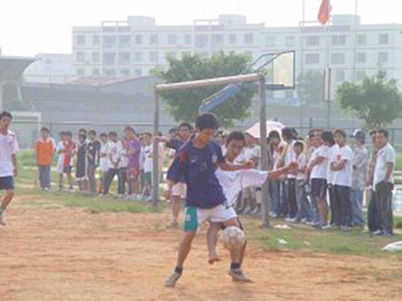 此次足球比赛决赛双方为2006涉外旅游专业与2006计算机网络专业。双方实力都非常强,真是棋逢敌手,双方表现也非常出色,一交手就打成了胶着状态,上半场打成了0:0。当观众们还沉浸于上半场球员们呈上的视觉盛宴时,2006级计算机网络队在下半场刚一开始便骤然发力,在场上球员一连串漂亮的假动作和完美的配合下,该队率先打入一球,场外顿时一片欢腾。正所谓狭路相逢,勇者胜。2006级涉外旅游队毫不示弱,全力进攻,两翼齐飞,终于在下半场20分钟后打入一球。在接下来的比赛中,2006级涉外旅游队越踢越猛,尤其是85号前锋,他一马当先,突破重重防守,连进两球,他的精彩表演赢得了场外观众的阵阵喝彩和呐喊。2006级计算机网络队虽然奋勇拼搏,在结束前一分钟又奋力博得一球,但终究无力回天,以2:3负于涉外旅游队。