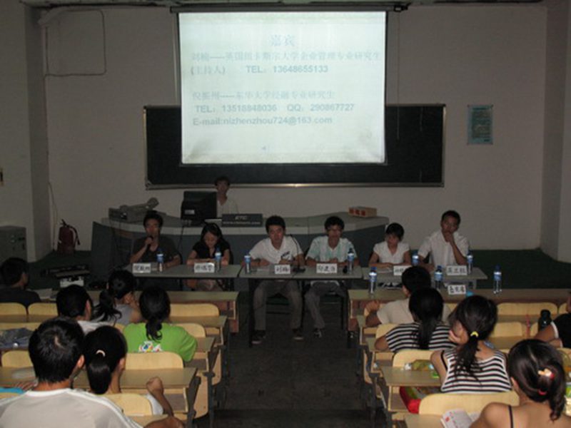 2008年5月27日下午3:00 ,由经济学院团委举办的“经济学子,考研风云”交流会在william威廉英国官网1号教学楼T101顺利举行。此次交流会邀请了04级6位考研成功的师兄师姐与准备考研的同学分享他们的考研心得体会。他们分别是:刘楠-----英国纽卡斯尔大学企业管理专业研究生,倪振州-----东华大学经融专业研究生,林艳芳-----上海大学会计专业研究生,龚兰桂-----湘潭大学产业经济学专业研究生,郑建存-----深圳大学企业管理专业研究生,许瑞芳-----中山大学管理科学与工程专业研究生。参加会议的还有院党委书记符史岱、学工办主任吴新、团委书记谭继。