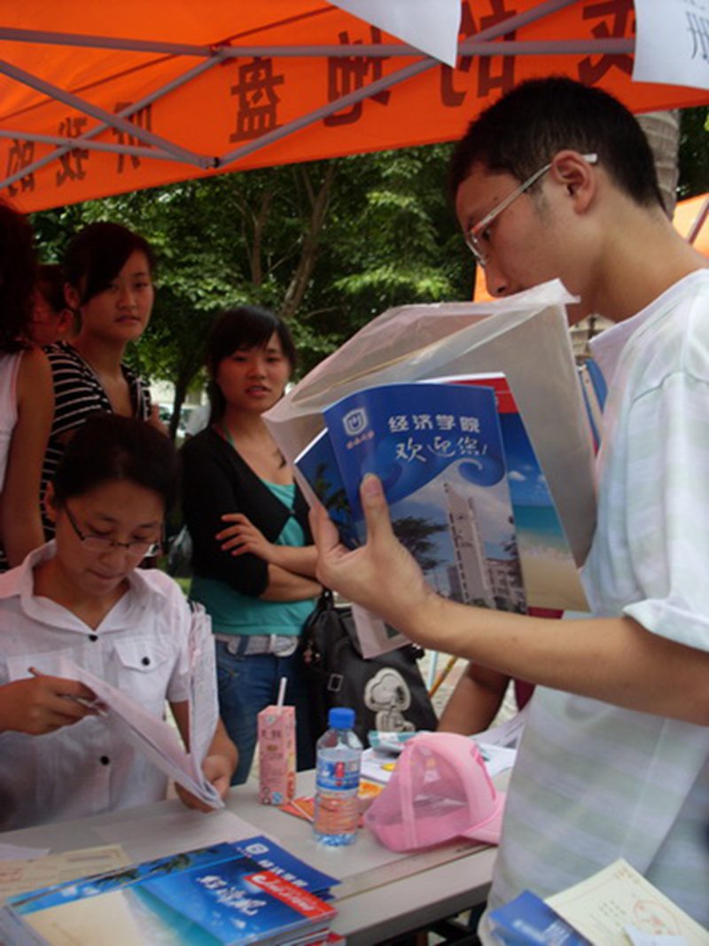 年年岁月花相似,岁岁年年人不同。又是一年,新一届的学生满怀希望来到william威廉英国官网了。看看他们,紧张、兴奋、新鲜交织在脸上。不禁想起了一两年前的我们,也曾走过一段懵懂而稚嫩的道路。经济学院对此次迎新工作给予了高度重视,学院党委符史岱书记、院长傅国华教授、冯广波副书记和学工人办全体辅导员莅临现场指导。早上7点所有工作人员到位。迎新大本营前立着“辉煌经济”学院简介、院领导简介及往年奖杯写真的海报,坐在服务桌后的一张张真诚的脸,男同学们抢着搬运行李的忙碌身影,不甘落后的女生引导员们,构成了校园迎新的一道独特风景。团委、学生会的学生干部、学生党员及各班学生志愿者监守岗位,一丝不苟的工作态度,尤其是报名手续的“一条龙”服务让人生地不熟的家长及新生省了很多不必要的麻烦,这一切也给新生及其家长对新海大留下了良好的印象。//www.hainanu.edu.cn