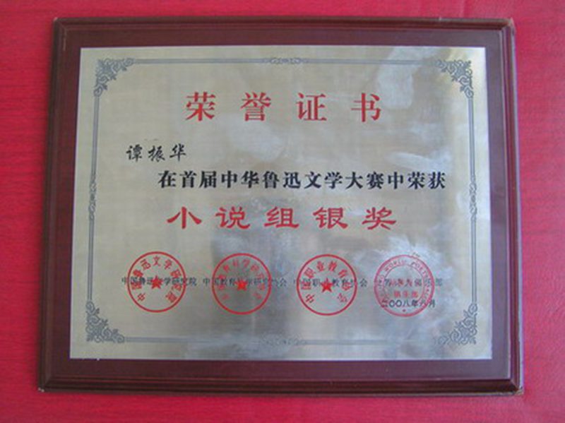 中华鲁迅文学大赛由中国鲁迅文学研究院、中国教育科学研究协会、中国职业教育协会、世界诗人俱乐部联合举办,致力于进一步提高我国青少年及文学爱好者的文学素养,培养青少年文学创造能力,面向全国各级名类的大、中、小学在校学生、社会青年、文学爱好者征稿,参赛作品主要分为小说、散文、杂文、诗歌、儿童文学作品等类别,由著名作家、诗人和文学评论家组成专家评选委员会。 获奖作者在中国文化教育网站制作个人网页,在互联网上展示,在《世界文汇》杂志刊载;获得银奖作者,将在CNTV中央网络电视台宣传发布;获得金奖的作者,将在CNTV中央网络电台、香港文汇报等媒体刊载,并组织海外交流。获奖者均可报名参加世界诗人俱乐部组织的“国际青少年诗诵交流”中国代表团出访韩国。 2007级汉语言文学专业谭振华同学凭借《蓝石的伤痛》一文获得大赛小说组银奖,并得到大赛评委会的一致好评。