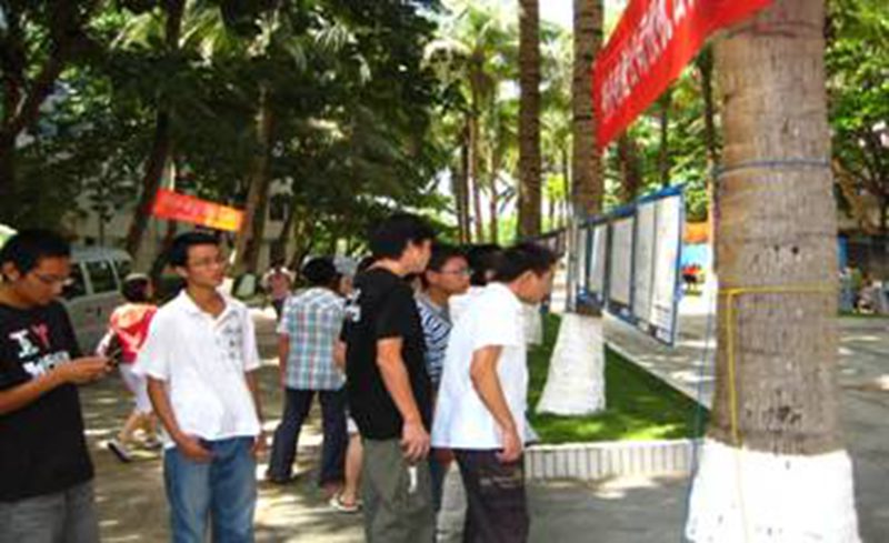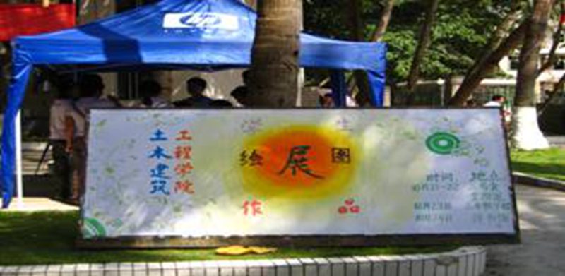 充满灵感的手,挥向九月湛蓝的天空,椰林打碎了一地的阳光;蕴涵笑意的眼,投向十月欢腾的校园,绿树为不是冬天的冬天伴唱;在这个风华四溢的花样年华,我院举行一次规模很大的画展,为这个丰富多彩的校园添了一抹色彩。 从十月二十一日开始,我院陆续在第三食堂三号教学楼及图书馆附近举行为时四天的专业画展。本次画展在全院师生的精心策划下,共收集学院学生做的建筑设计、施工设计、楼盖设计,还有优秀的毕业设计等86件作品。这些展出作品中,有工整秀美的字体练习,有严谨规范的各种结构设计,还有美伦美奂的小学设计。内容丰富多彩,使刚进入海大土木建筑工程学院的学子们进一步了解自己的专业。同时让海大学子了解了我们土木建筑工程学院。 在展出期间前来观赏的海大学生络绎不绝,尤其是中午和下午在展出地迎来大量其他学院的同学,他们对那些精心的设计表现出强烈的兴趣。 学校学生处、团委领导分别莅临现场指导工作,学院卫宏院长、黄玉端书记及学工办周邦华老师也先后莅临指导工作,并对这次画展给予好评,学院教务老师为画展精心选画,付出了辛勤的劳动。团委和学生会干部都表现出极大热情,从表画到展出轮流值班,工作负责,对画的安全做了良好的保护。 举办这次画展,不仅是学员自身专业水平提高的一次展示,也是土木与建筑专业教学的一次检阅。展出的作品显示我院同学独特设计风格和思维,以及较强的创作能力。面对海大211工程立项之即,我院展示了自己优秀的精神风貌。本次画展的成功举办,是师生团结开拓、上下齐心的成果,也预示着我院美好的明天。
