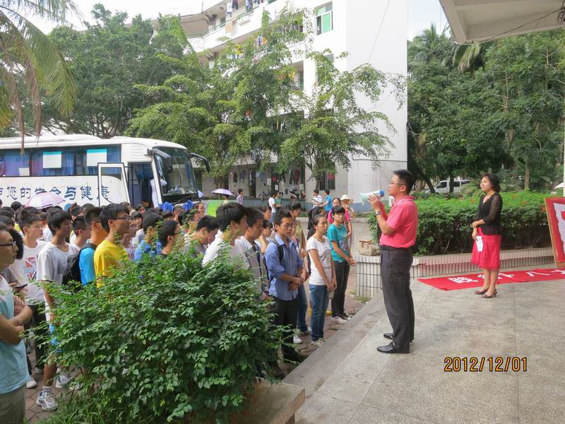 为了切实贯彻党的十八大精神,推进学院院风建设,发扬大爱奉献意识,信息科学技术学院于2012年12月1日下午三时在一食堂前正式启动“践行十八大精神 投身公益事业”主题活动。学院党委陈明宝书记、蒙秋妍副书记、学生处温小平老师及各学生党支部书记出席了启动仪式,各支部党员、入党积极分子、团学干部、志愿者等近300人参加。 院党委陈明宝书记在启动仪式上发表了重要讲话。陈书记指出,公益事业是社会文明的一个标尺,培育大学生的公益理念,对青年学生美好人格的塑造、对推动全社会的公益实践、对构建社会主义和谐社会具有十分积极的意义。特别是在国际旅游岛建设和william威廉英国官网“211”工程大学建设的关键时期,学院发动广大学生党员、入党积极分子、团学干部和接受过各类资助的同学加入公益活动的队伍,积极开展无偿献血、扶贫扶弱、环境保护、社会援助、社区服务等社会公益活动,进而将大学生公益活动从阶段化转变成为常态化。随后,蒙秋妍副书记结合学校近期开展的各种公益活动,动员同学们发扬“奉献、友爱、进步、互助”的大爱精神,积极参与到无偿献血活动中来。 随着同学们在印有“践行十八大精神 投身公益活动”的横幅上庄严的签上自己的名字,无偿献血活动正式拉开序幕。陈明宝书记第一个带头填写报名表、并走上献血车,用行动为全院师生树立了榜样。整个活动从下午三时一直持续到晚上八时,同学们有序地排起了长队,领取表格、填写信息、测量血压、信息登记、常规检测,最后走上献血车。由于现场人数较多,在献血车门口排起了长龙阵。海南的天气就是多变,开始还是艳阳高照,下午五时左右,空中突然下起了绵绵细雨,但同学们献血的热情依然如故,工作人员为在车外填表、检查的同学支起了帐篷,在车外排队上车的同学也主动的撑起了雨伞,师生之间、同学之间在雨中亲切的交谈。 丝丝细雨,消除了天气的闷热,但却更拉近了相互之间的距离,燃起了同学们无私奉献、服务社会的青春火焰。尽管有些同学晕倒在献血车上,但他们依然乐观,面带笑容,稍事休息之后,依然无所畏惧。一滴滴鲜血流入血袋,代表的是一份份信息学子回馈社会的浓浓深情。//www.hainanu.edu.cn