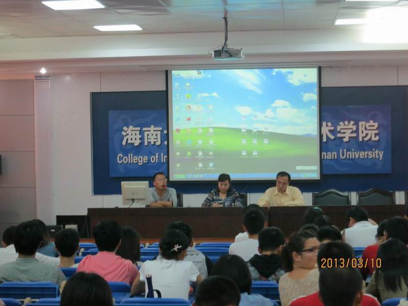 2013年3月10日下午,信息科学技术学院第一次学生干部工作会议在院报告厅如期召开,参会人员为学院团委学生会全体学生干部以及全院大一至大三年级各班班长、团支部书记。学院党委副书记蒙秋妍、团委书记齐昌盛、学工办齐有伟老师出席了本次会议。