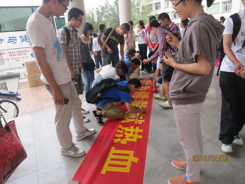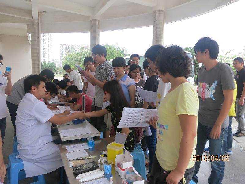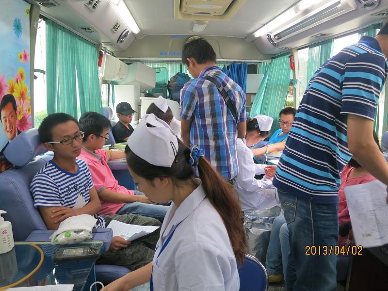 为确保2013年博鳌亚洲论坛年会期间医疗应急用血需求,展现我院大学生乐于奉献的精神风貌和社会责任感,信息学院团委积极响应海南省无偿献血办公室、海南省血液中心倡议,开展了“捐献青春热血,彩绘人生画卷”——“我为博鳌献热血”活动,学院团员青年积极响应。 2013年4月2日星期二下午四时半,无偿献血活动热烈举行,来自我院各专业学生热情高涨,争献热血。学院党委蒙秋妍副书记、团委书记齐昌盛老师来到现场,并为献血的学生带去了小礼品。齐老师在献血活动正式开始前作了一番感人肺腑的动员讲话,他说,热血挽救生命,生命延播爱心。无偿献血是青年大学生勇担社会责任的方式之一,以无偿献血的形式,传递“奉献、友爱、进步、互助”的志愿服务精神,为博鳌亚洲论坛年会的顺利召开贡献自己的一份力。省血液中心郑日大副科长向献血学生强调了献血须知和献血后需要注意的相关事项。在工作人员的协助下,志愿献血的同学们有序地按步骤完成了献血前的登记程序及血型鉴定。在完成一系列的准备之后,符合献血要求的同学们陆续登上献血车开始献血。 据统计,短短两小时近70名学生参加了无偿献血活动,彰显了同学们浓厚的社会责任意识和无私奉献的良好精神。