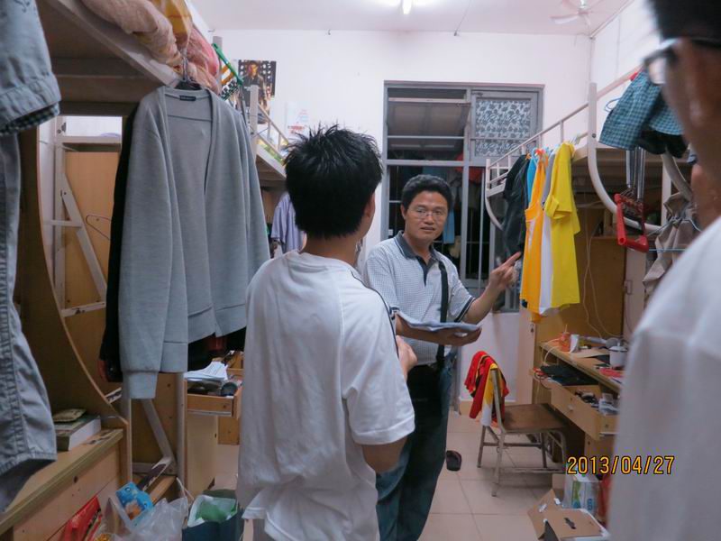 4月27日晚,信息学院辅导员、学生会自律部学生干部,在学院党委蒙秋妍副书记的带领下,来到学生宿舍进行走访和安全排查,分别对我院学生居住的3号宿舍楼、5号宿舍楼、6号宿舍楼和紫荆公寓等宿舍进行检查。重点排查了校外住宿情况和宿舍安全隐患。检查中,蒙书记和学工办伍庆清主任分别向学生了解了宿舍动态,并针对即将到来的五一小长假进行了安全教育。此次检查结果显示,我院学生在宿舍住宿情况较好,同学们已具备了宿舍防火等方面的安全防范意识。//www.hainanu.edu.cn