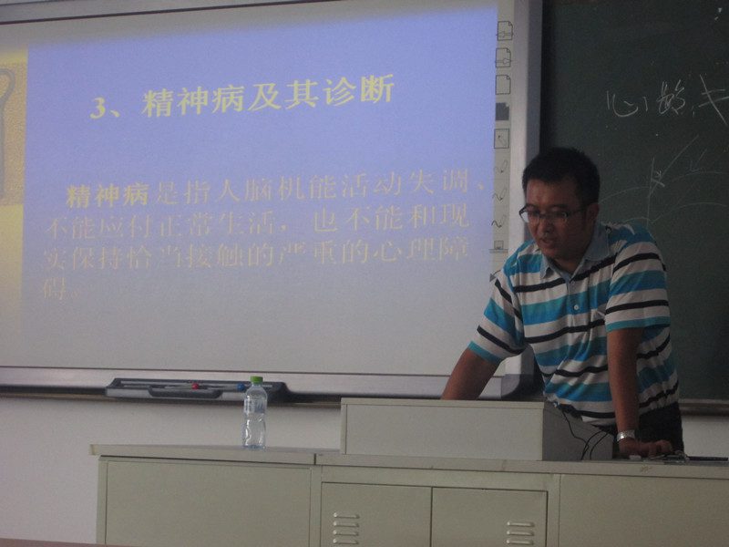 2013年4月27日下午4点40分,在4教308,为普及心理知识,开展“5.25”心理活动月活动,学院心理辅导员詹达夫老师为全体学生干部做了题为“大学生常见心理卫生及应对”的心理知识讲座。