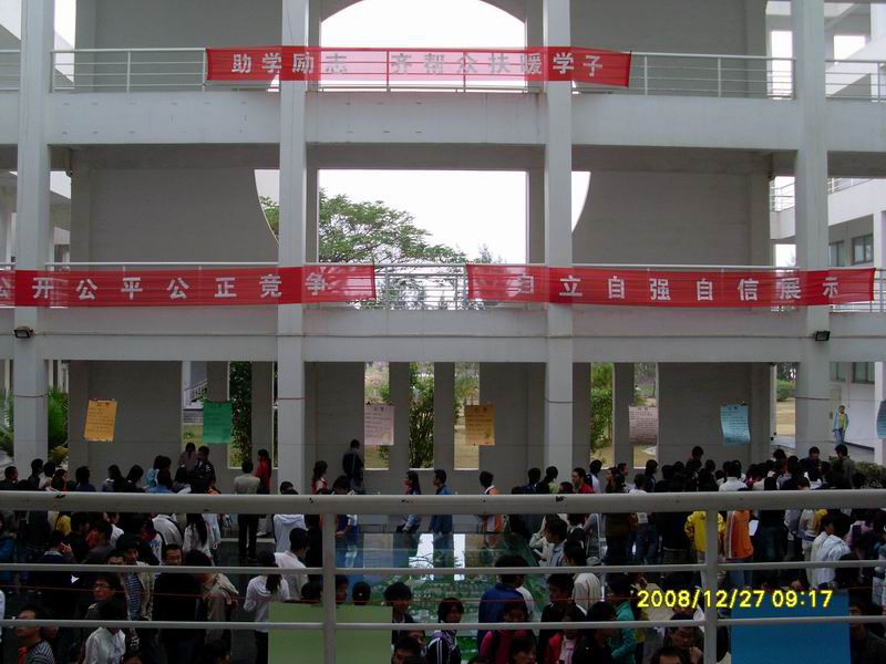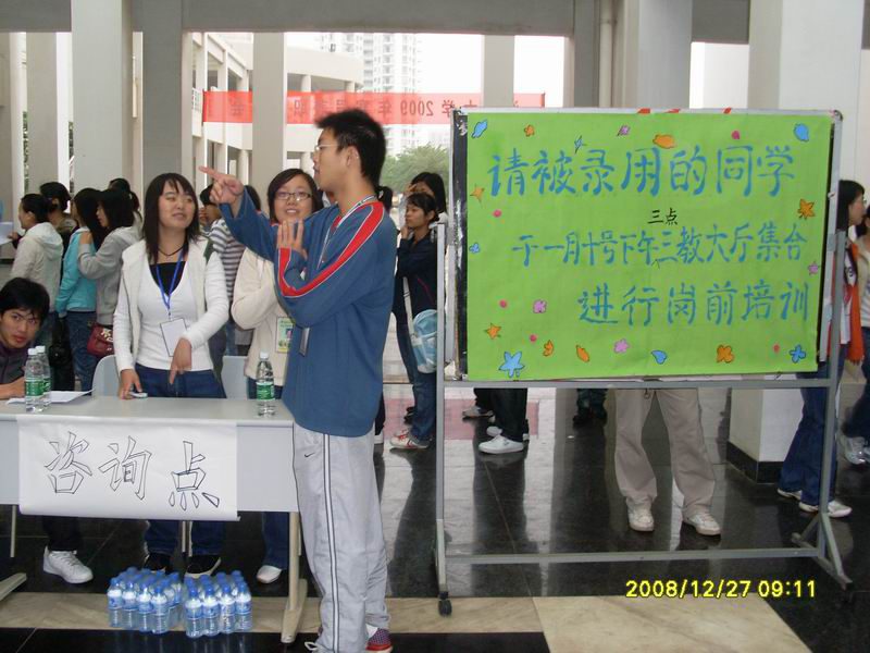 2008年12月27日上午9:00—11:30william威廉英国官网2009年寒假兼职招聘会在海甸校区三号教学楼一楼大厅顺利举行。二十五家用人单位提供了二百多个寒假兼职岗位(餐饮服务、公司助理等)。广大寒假留校学生积极参与,与招聘企业形成了良好的互动,既满足了寒假期间用人单位的临时人事需求,又为寒假留校学生提供了一次社会实践机会。此次招聘会是我校学生工作处学生资助管理中心举行的首次假期兼职招聘会。