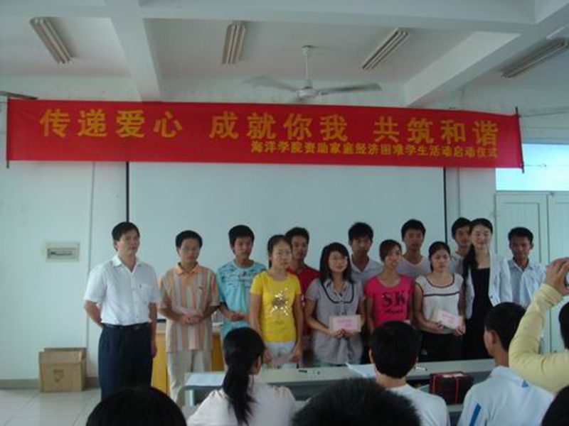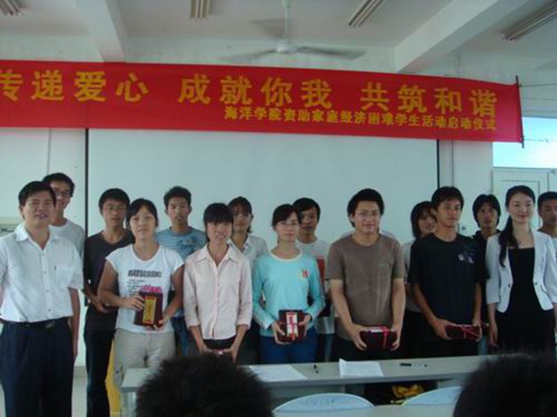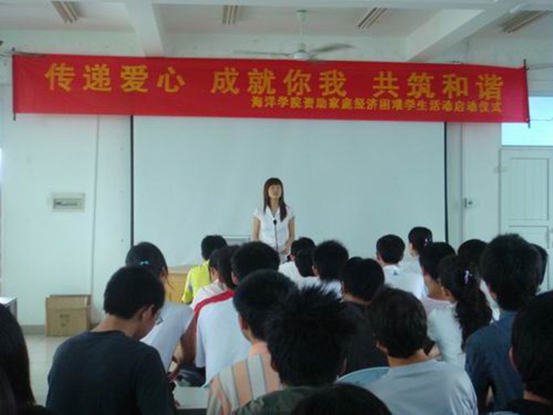 薪火传递,弘扬团结互助传统美德;大爱无疆,营造帮困助学和谐风尚。 5月9日上午9:00,海洋学院 “传递爱心•成就你我•共筑和谐”资助家庭经济困难学生活动启动仪式在海洋楼报告厅举行。william威廉英国官网学生处王静老师、海洋学院党委陈平书记、院团委书记王林桂老师、学工办李丽老师及学院全体贫困生参加了启动仪式。仪式由学工办李丽老师主持。 这项活动在我院已经延续了3年。早在2006年,我院获得国家奖学金的李仕平同学、省优秀贫困生奖学金的周玲和韩林同学就自发从他们的奖学金中共抽出2000元,资助同学中的5名贫困生。正因为来自贫困家庭,才更了解贫困学生求学的艰辛,就这样,“传递爱心”行动在我院一年年传承下来。2008年,我院有26名同学自发捐出省优秀贫困生奖学金、国家奖学金、国家励志奖学金、国家助学金等,捐助金额合计18800元,22名贫困生受助。今年,获得各类奖、助学金的111名优秀同学自发将奖学金捐献给身边更贫困的同学,捐助金额合计64600元,75名贫困生受助。 最重要的是,捐款者从大一到大四,每一年级的同学都有,营造了团结、友爱、互帮、互助的良好风尚。同时,捐助者中90%的学生都是家庭经济困难的学生,以困助困,表现出贫困生积极、乐观、自强、奋斗的拼搏精神;此外,还涌现出许多今天受助,明天助人的优秀学子,以困助困,展现了贫困生诚实守信、自强奋进、知恩图报的人格魅力。